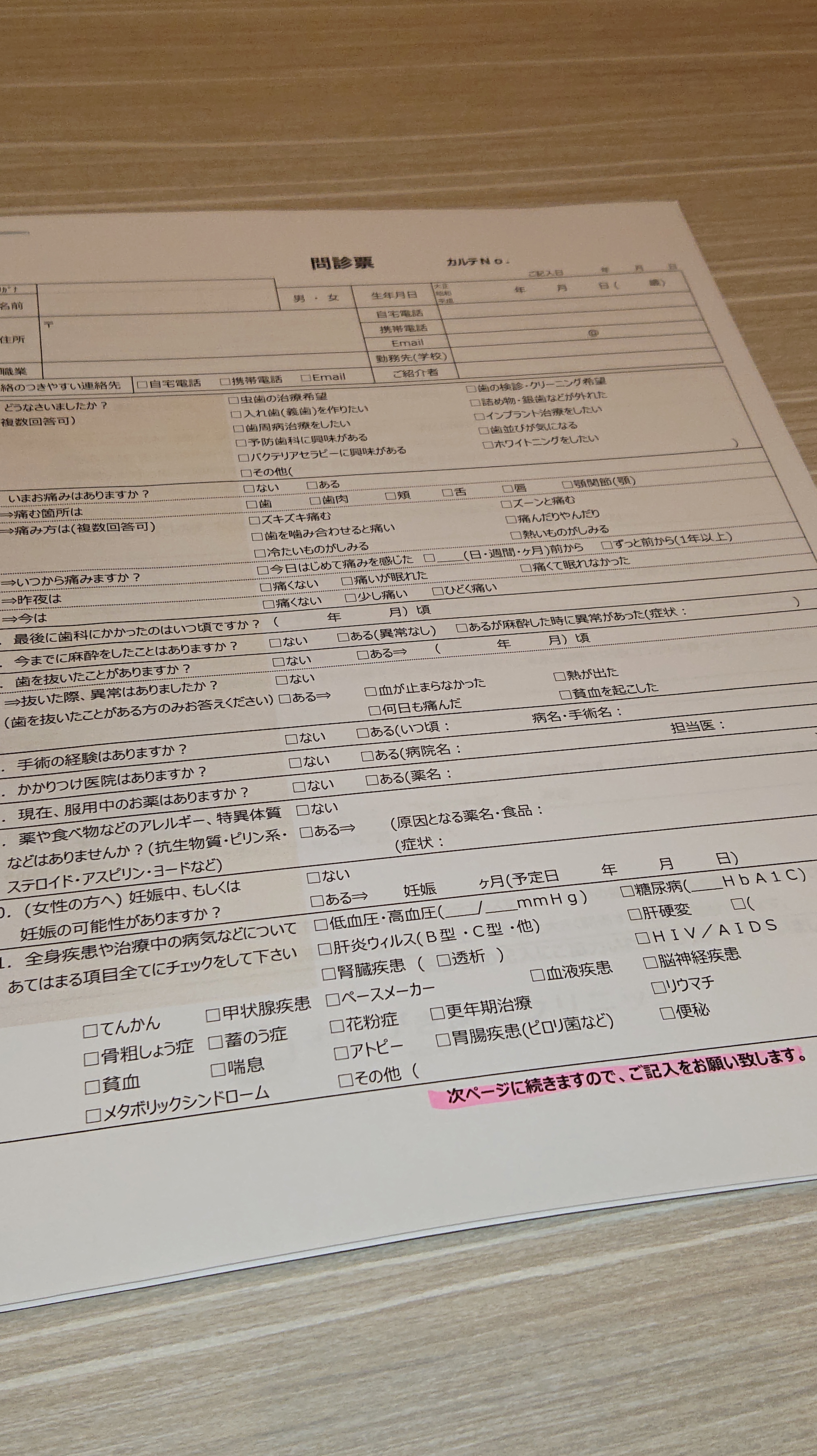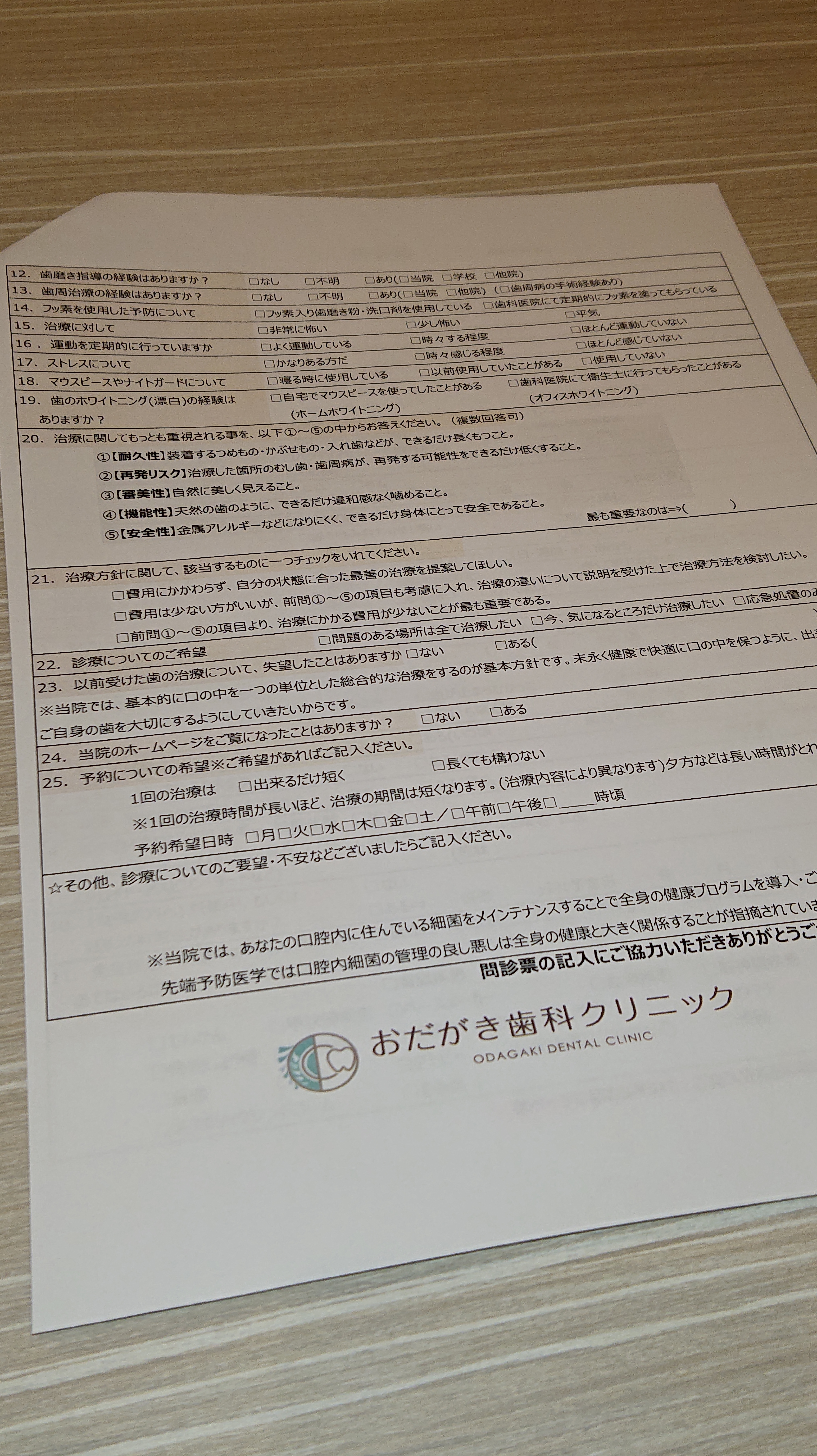 当院の問診票は、少々ボリュームがあり、2ページ25項目で内容も多岐にわたるため、お手数お掛けしてしまうのですが、