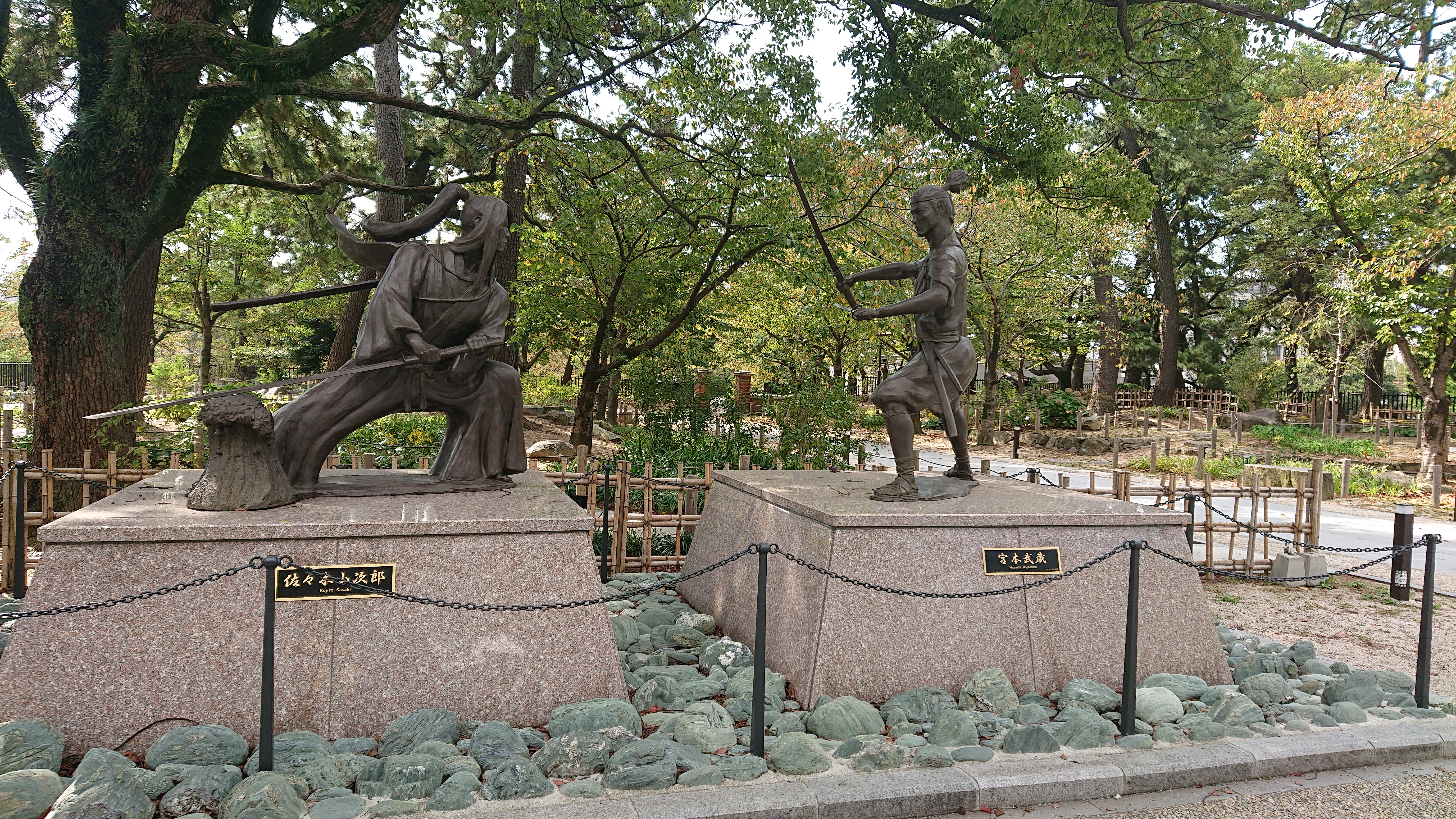 城の外には宮本武蔵と佐々木小次郎のモニュメントをみて知りました。